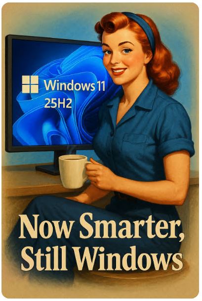 It’s 2025, and Microsoft just dropped Windows 11 25H2. Relax — they didn’t reinvent the wheel again, just polished the spokes and painted the logo shinier blue. It’s the kind of update that arrives quietly, fixes a few things you didn’t notice were broken, and adds some AI nonsense that insists on helping when you least need it.