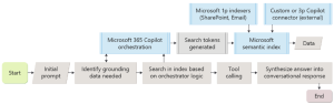 Copilot Chat follows a retrieval-augmented generation pattern. Instead of relying purely on pretrained model knowledge, it dynamically retrieves enterprise content and injects relevant segments into the inference context.